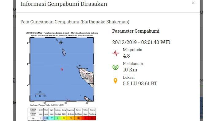 Informasi terkini mengenai gempa yang terjadi hari ini Jumat 20 Desember 2019. Dini hari. Kekuatannya magnitudo 4.8