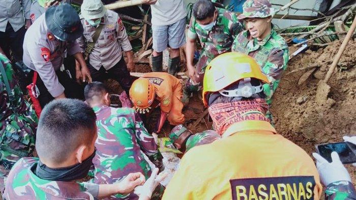 Korban ditemukan tidak jauh dari lokasi rumahnya yang terbawa matrial banjir bandang dan tanah longsor.