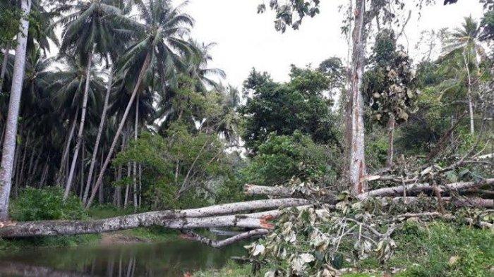 Akibat pohon tumbang yang terjadi di Desa Botuliodu, Bolaang Mongondow Selatan, Sulawesi utara, Senin (02/03/2020).