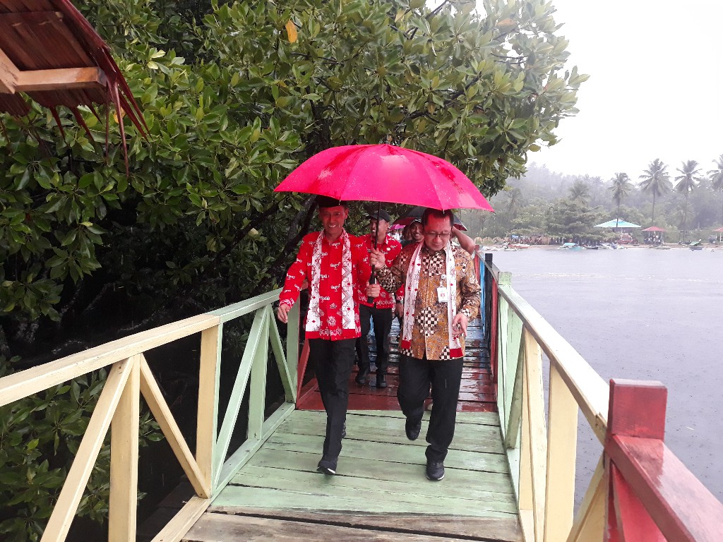 Di Bawah Lindungan Payung Merah, Iskandar dan Taufik Tinjau Mangrove Ocean Park Trans Pato'a