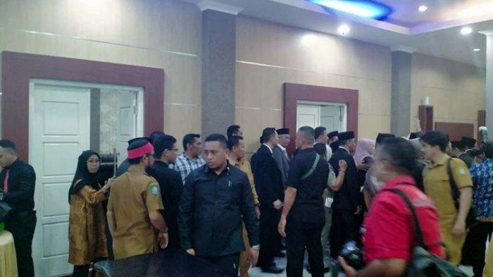 Kericuhan terjadi ketika Gubernur Maluku Utara Abdul Gani Kasuba memberikan sambutan di hadapan 11 pejabat yang dilantik di Kota Ternate, Senin (16/3/2020).