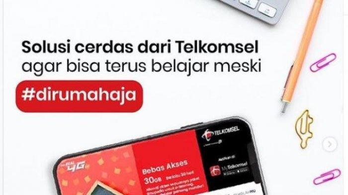 Saat ini Telkomsel gratiskan 30GB untuk sistem pembelajaran di rumah (e-Learning) pada aplikasi Ruangguru.
