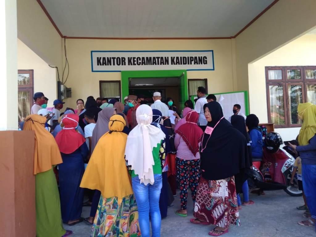 Pasalnya, ratusan warga memadati kantor Kecamatan Kaidipang untuk menerima bantuan dari Pemerintah Provinsi oleh Dinas Sosial Bolmut didampingi Tenaga Kesejahtraan Sosial Kecamatan Sulut (TKSK) di Kabupaten Bolaang Mongondow Utara (Bolmut), Rabu (22/4/2020).