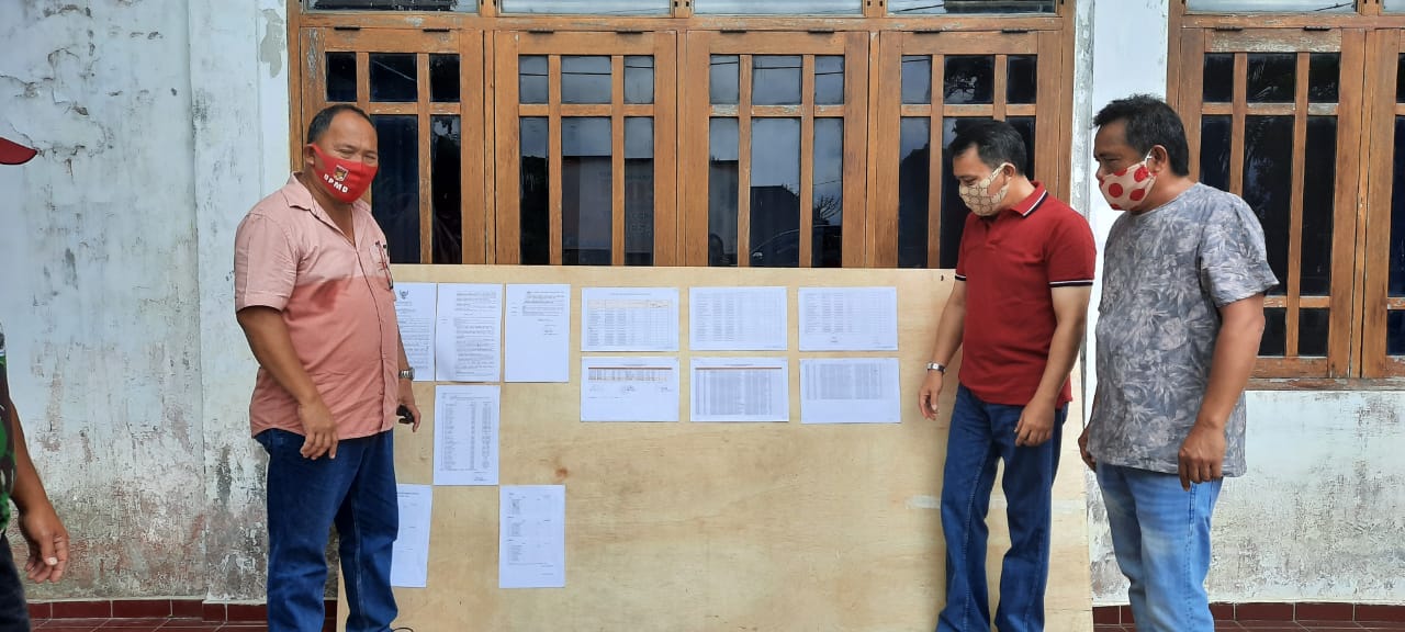 Kepala Dinas Pemberdayaan Masyarakat dan Desa (PMD) Kabupaten Minahasa Jeffry Tangkulung SH MAp mengecek pengumuman nama-nama penerima Bantuan Langsun
