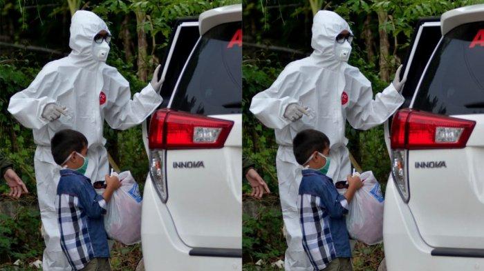 TRIBUNMANADO.CO.ID - Potret penjemputan bocah laki-laki berusia 7 tahun yang dinyatakan positif virus corona menjadi viral.