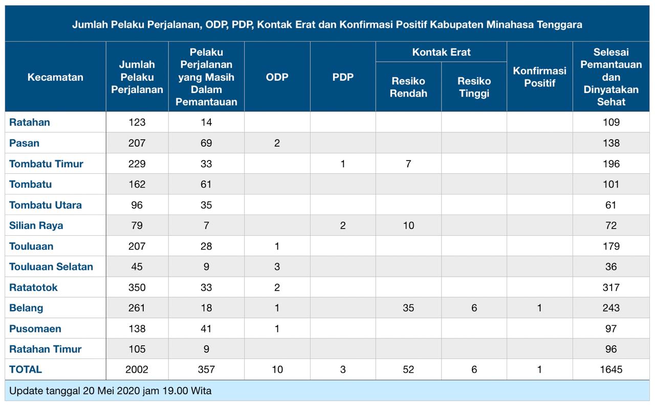 Berdasarkan data terakhir, Rabu (20/5/2020) kemarin, ada penambahan data PDP di Kabupaten Mitra yakni PDP 09 perempuan bayi (14 hari), asal Kecamatan Silian.
