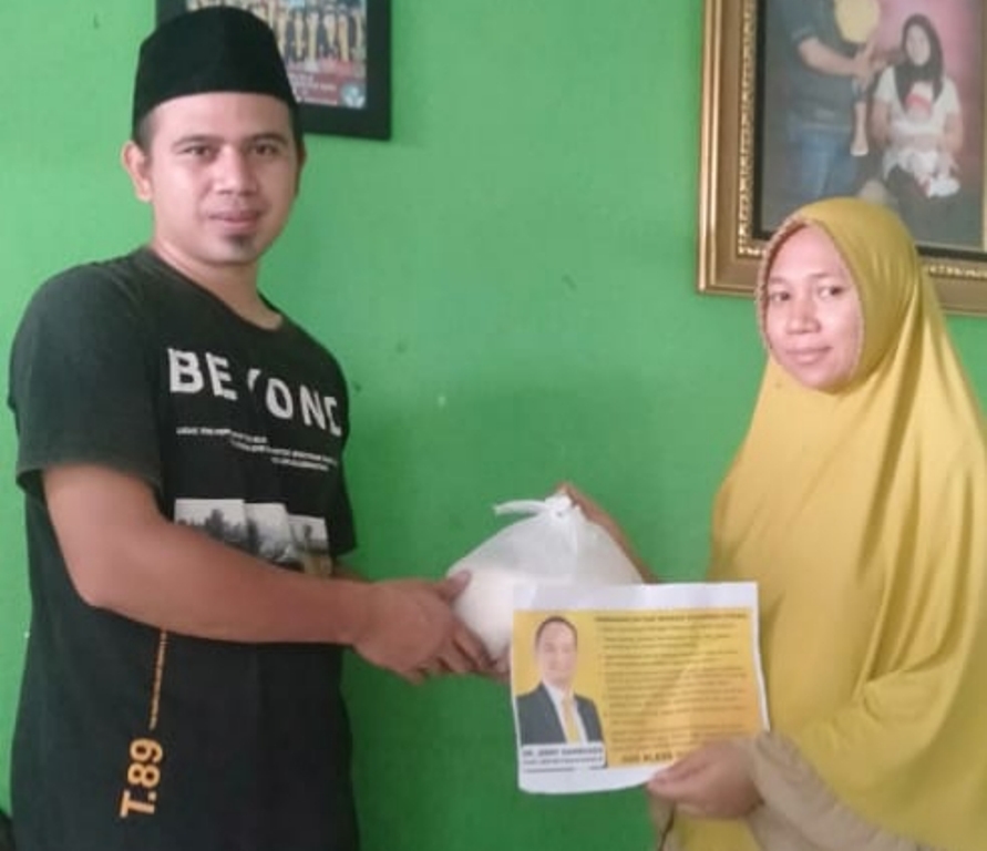 Bantuan yang disalurkan berupa beras dan ikan kaleng yang menjadi kebutuhan pokok masyarakat di tengah pandemi Covid-19.