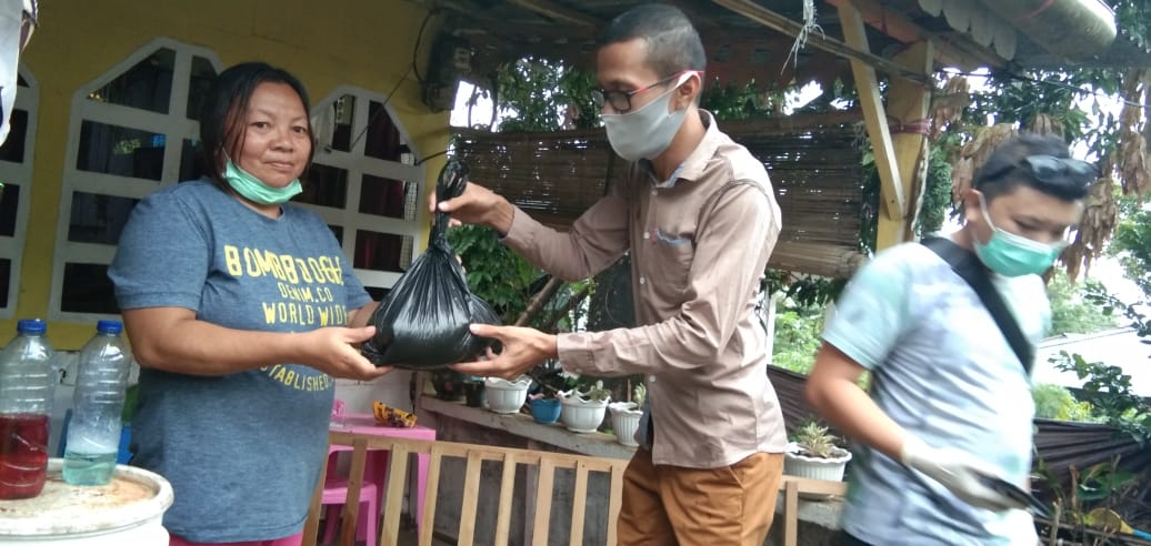 Ia membagikan hampir 200 paket bahan pokok berupa masker dan telur yang disalurkan ke-10 desa di Kecamatan Dimembe.