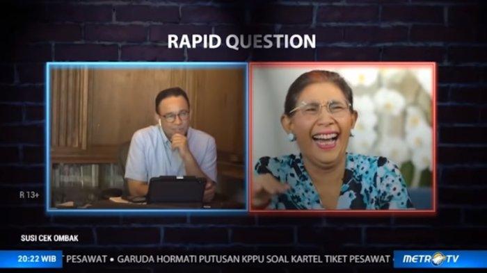 Kabarnya Susi Pudjiastuti dan Anies Baswedan muncul ditayangan Susi Cek Ombak di Metro TV, Rabu (24/6/2020).