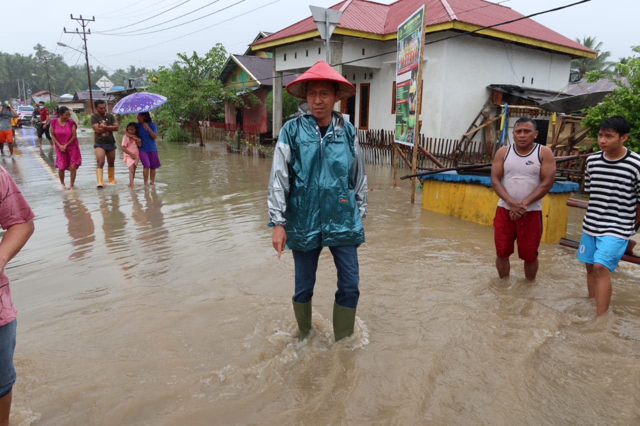 TRIBUNMANADO.CO.ID, BOLAANG UKI - Meski hujan deras mengguyur wilayah Bolaang Mongondow Selatan (Bolsel) dan menyebabkan sejumlah rumah di Desa Tolondadu dan Tolondadu I Kecamatan Bolaang Uki terendam Banjir, namun tak menyulut Bupati Iskandar Kamaru, untuk meninjau langsung bencana tersebut.