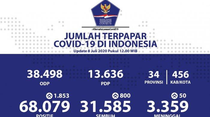 Jumlah Kasus Positif Covid-19 di Indonesia Capai 68.079 Orang, Rabu 8 Juli Catat Rekor Terbanyak