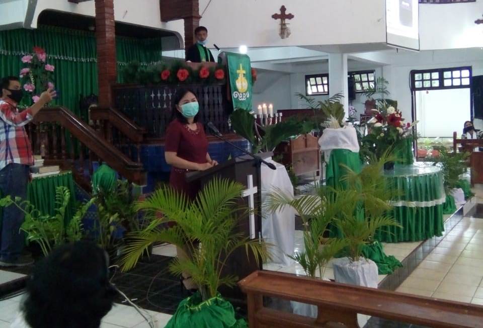 Djein Leonora Rende ikut ikut dalam peribadatan di Jemaat GMIM Sentrum Dame Tosuraya Ratahan, Minggu (19/7/2020).