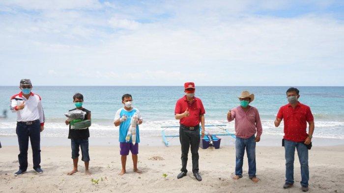 Salah satunya diserahkan kepada kelompok nelayan di Desa Bukit Tinggi, lengkap dengan alat tangkap ramah lingkungan.