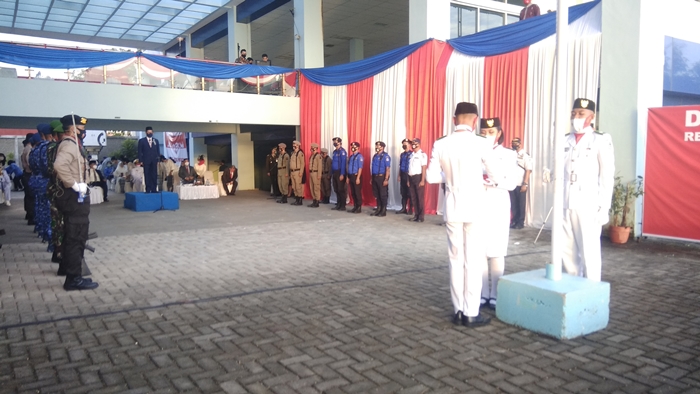 TRIBUN MANADO.CO.ID, MANADO - Usai menjadi Inspektur upacara pengibaran bendera di Manado Tua, sore hari Wali Kota Manado Vicky Lumentut hadir di Dinas Pariwisata untuk upacara penurunan bendera, Senin (17/8/2020).