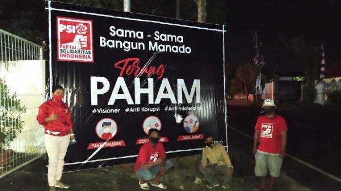 Kami sedang melakukan pemasangan baliho dan spanduk untuk ajakan torang PAHAM agar kompak dalam membangun Manado.