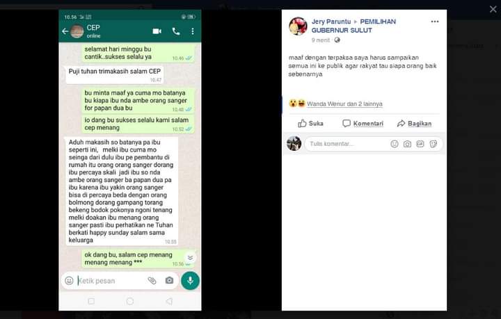 Dalam kampanye hitam itu, seseorang memakai foto profil yang biasa dipakai oleh Tetty Paruntu pada nomor Whatsapp-nya 0816xxx. Kemudian ada obrolan beberapa paragraf CEP (Tetty Paruntu) dengan salah satu pendukungnya bernama 'Melki'.