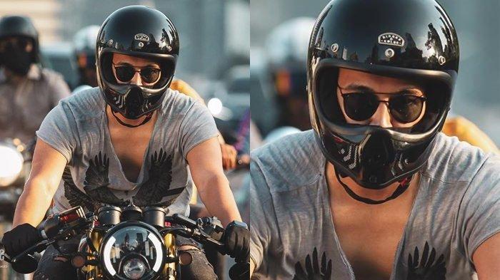 Pesona vokalis band saat mengendarai Motor Gede alias moge ini nggak terelakkan lagi.