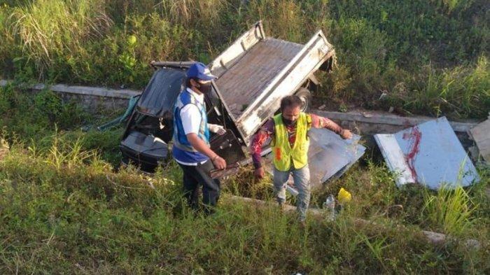 "Karena melaju sangat cepat, pick up yang dikendarai M (29) akhirnya oleng di KM 13,500 hingga keluar jalur dan masuk dalam selokan yang mengakibatkan Y (22) yang duduk di belakang terhempas dan terbentur keras hingga meninggal dunia, sedangkan tambah dia untuk M (29) dan I (26) hanya mengalami luka ringan," jelasnya