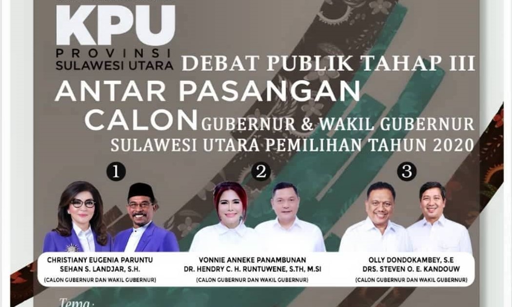 TRIBUNMANADO.CO.ID - Komisi Pemilihan Umum Daerah (KPUD) akan menggelar debat publik tahap III antar pasangan calon gubernur dan wakil gubernur Sulawesi Utara pada Selasa 17 November 2020.