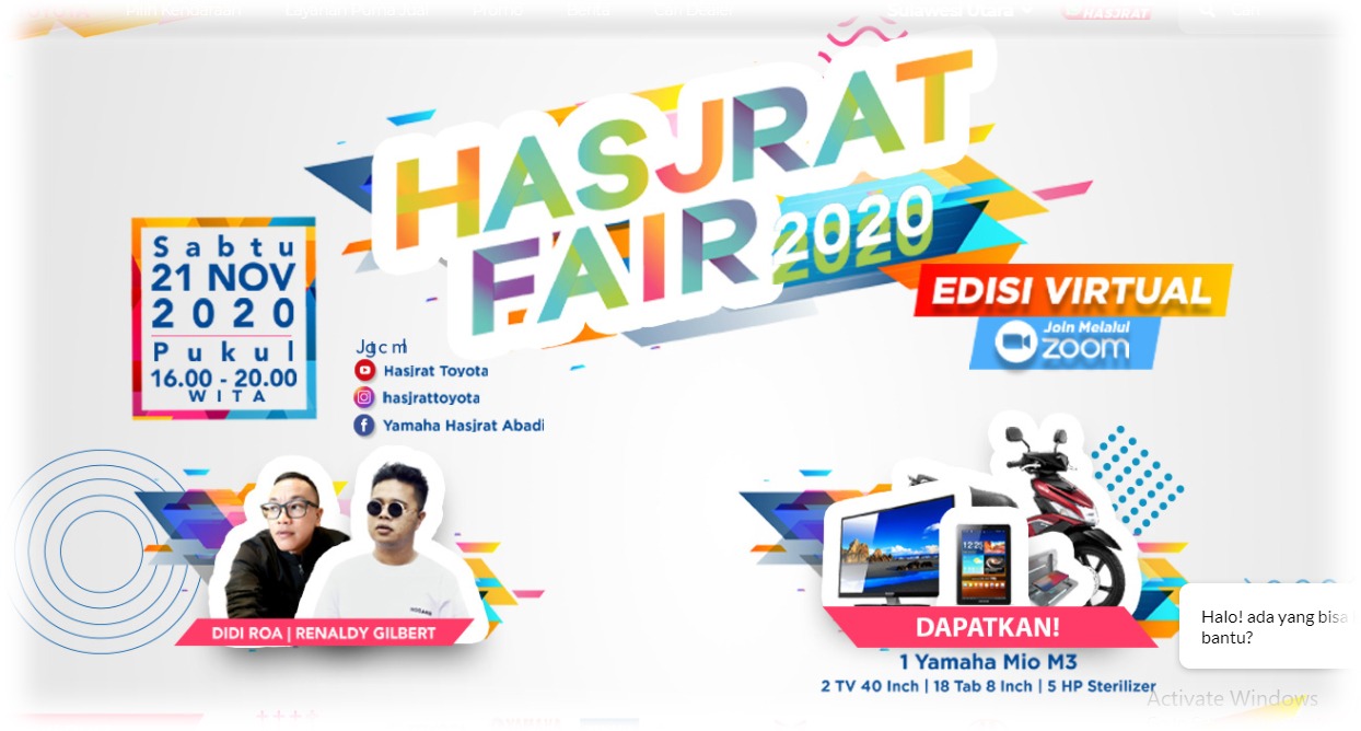 “Promosi besar-besaran dari semua produk PT. Hasjrat Abadi akan ada di acara Hasjrat Fair ini yang diselenggarakan di hari Sabtu, 21 November 2020 pukul 16.00-20.00 Wita, mulai dari DP 15% atau sekitar 20 juta dengan rate / bunga yang sangat kompetitif.