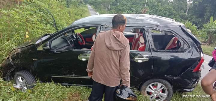 SU lalu kehilangan kendali dan mobilnya mengarah ke pinggir kiri jalan hingga terguling.