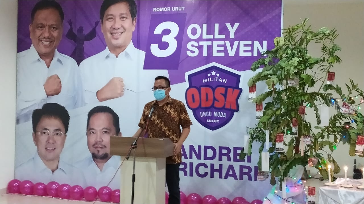 Ibadah Natal dipimpin Pdt Royke Umboh, yang turut dihadiri Wakil Wali Kota Manado terpilih dr Richard Sualang, Ketua Tim Pemenangan sekaligus pembina Militan Ungu Muda ODSK AARS Marhany Pua, Ketua Media Center AARS Steven Rondonuwu, Ketua Militan Ungu Muda Fransiskus Enoch, serta sejumlah jajaran pengurus Riedel Monginsidi, Marlon Lumansik, P Bonie Politon dan Dicky Syaramanual.