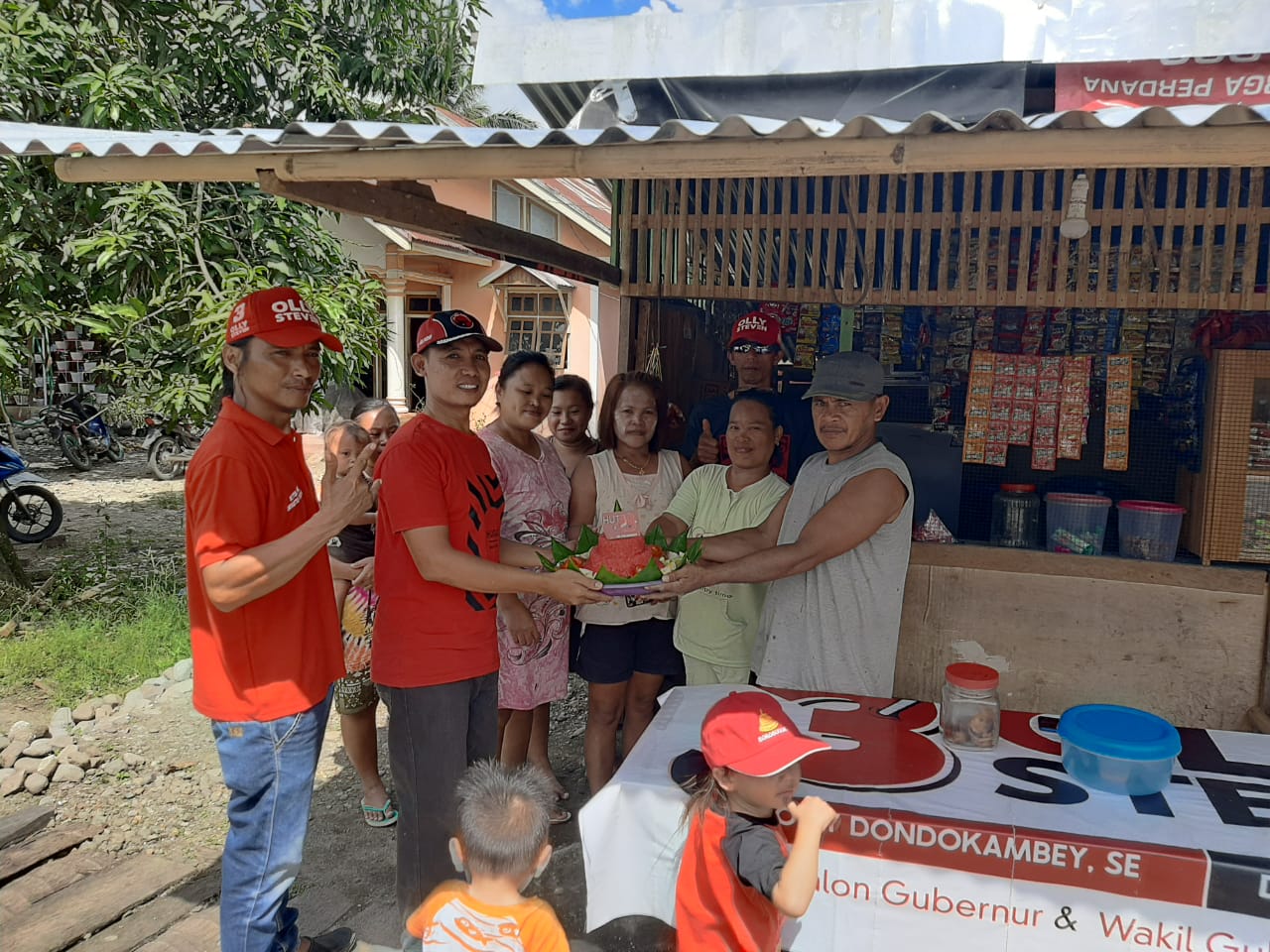 Kejutan dihadirkan Ramono, yang merupakan anggota DPRD Bolmong dari PDI Perjuangan. Ia membawakan tumpeng bagi wanita tua.