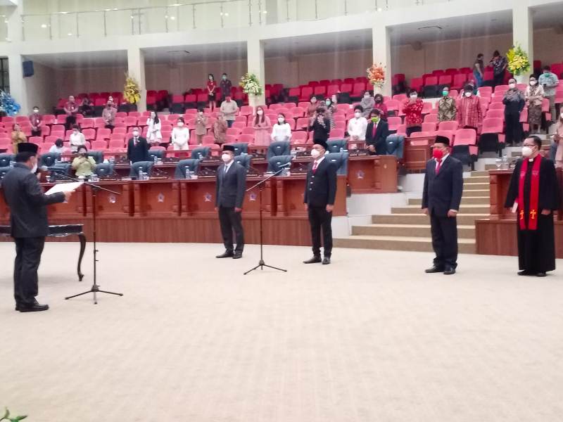 Ketua DPRD Sulut, Fransiskus A. Silangen melantik dan mengambil sumpah tiga anggota DPRD yang baru dalam sidang paripurna di gedung Deprov Sulut, Kamis (14/01/2021) siang.