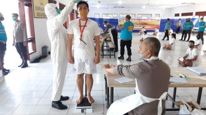 Peserta seleksi penerimaan Sekolah Inspektur Polisi Sumber Sarjana (SIPSS) tahun anggaran 2021 di Polda Sulut menjalani pemeriksaan kesehatan