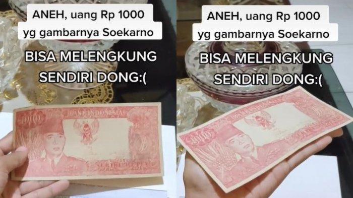 Didalam video sang penggungga TikTok yang mengatakan uang kuno Soekarno dengan nominal Rp 1.000 bisa menggulung sendiri.
