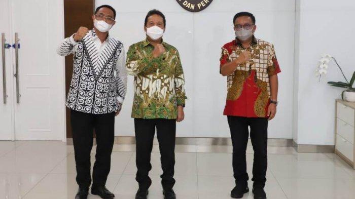 Manado, TRIBUNMANADO.CO.ID - Ir Maurits Mantiri MM Wakil walikota Bitung bersama Felix Piter Ketua Dewan Penasehat Komunitas MaMa for MaMa bertemu dengan Menteri Kelautran dan Perikanan RI Sakti Wahyu Trenggono di ruang kerjanya, Jumat (4/3/2021), kantor kementrian Kelautan dan Perikanan RI, di jalan Merdeka Timur nomor 16 Jakarta Pusat DKI Jakarta, Sabtu sore.