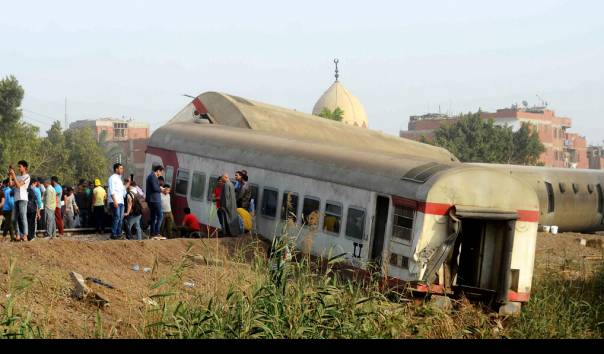 Kereta api yang anjlok di utara Kairo, Mesir ini juga menyebabkan 100 orang luka-luka.
