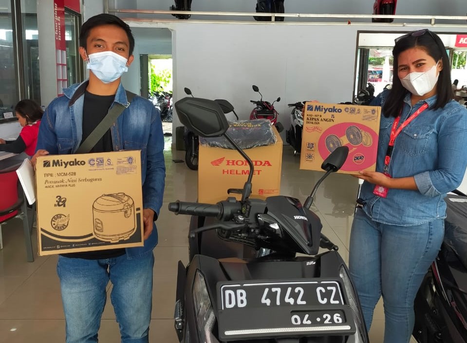 “Kostumer bawa kostumer juga merupakan salah satu program bagi semua sahabat setia Tridjaya Motor tidak terkecuali. Kami berharap para sahabat setia Motor Honda dapat memanfaatkan momen ini untuk dapat memiliki motor Honda di Tridjaya Motor Bitung”, Kata Jane.