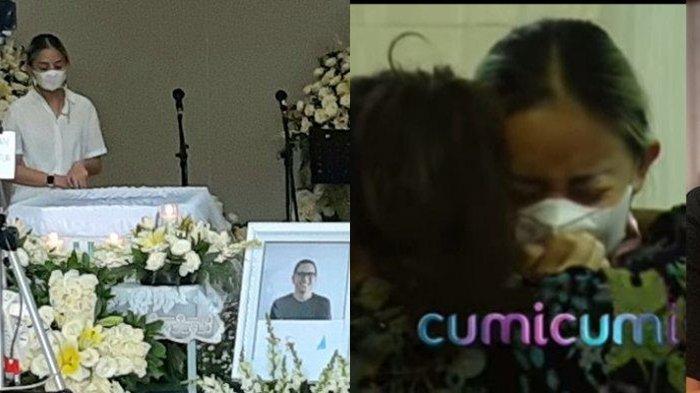 Melihat sang suami kini terbaring di peti jenazah, Joanna Alexandra tak kuasa menahan tangisannya.