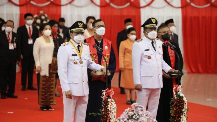 Gubernur Sulawesi Utara Olly Dondokambey melantik Walikota Manado dan Wakil Walikota Manado Terpilih di ruang Mapalus Kantor Gubernur Sulut, Rabu (31-03-2021).