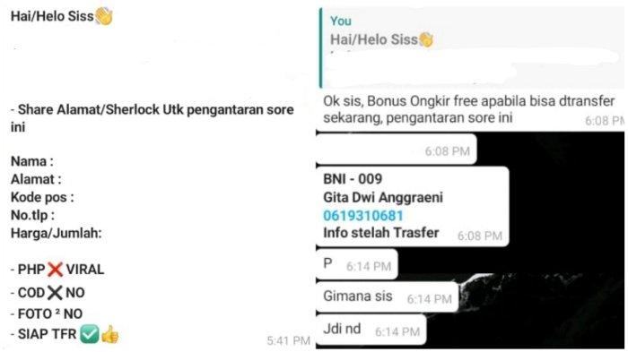 Awalnya pelaku meminta data-data pembeli mulai dari nama, alamat, nomor telephone, harga dan jumlah barang,