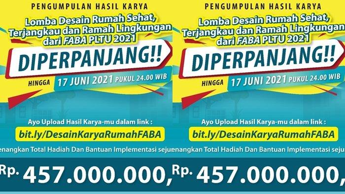 Batas waktu pendaftaran Lomba Desain Rumah Sehat, Terjangkau dan Ramah Lingkungan dari Material FABA PLTU Batubara yang digelar PLN diperpanjang.