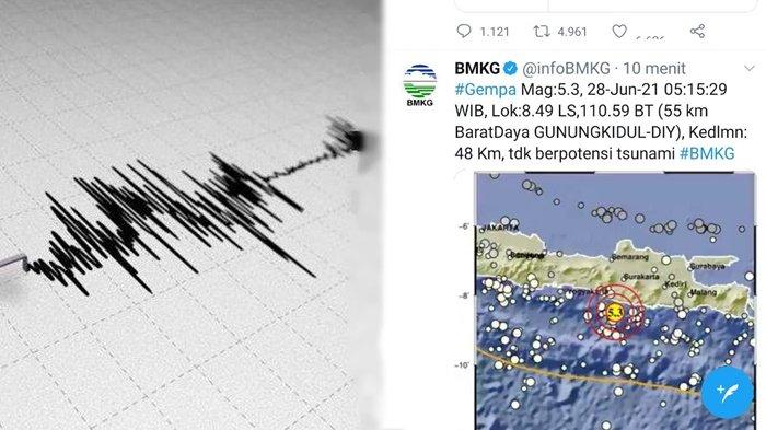 Gempa Terkini Senin (28/06/21) Pagi, Magnitudo 5,3 Guncang Yogyakarta, BMKG: Tak Berpotensi Tsunami