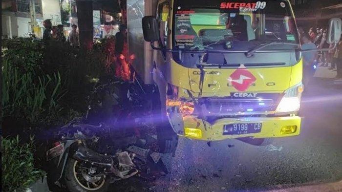 Kecelakaan lalu lintas itu melibatkan kendaraan sepeda motor dengan truk.