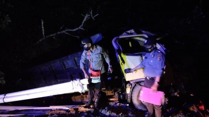 Kecelakaan itu melibatkan kendaraan truk yang mengalami kecelakaan tunggal.