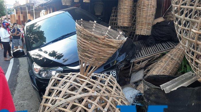 Saat di lokasi kejadian, mobil tiba-tiba langsung menabrak kios penjualan kerajinan bambu di pinggir jalan.
