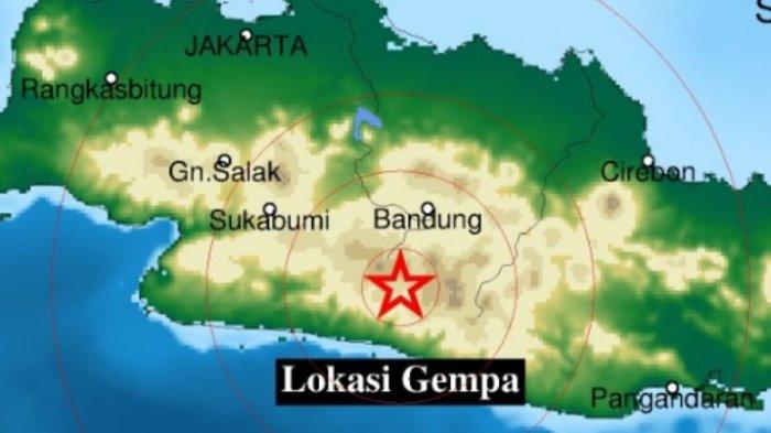 Episenter titik pusat gempa di darat, 26 Km dari Barat Daya Kabupaten Bandung.