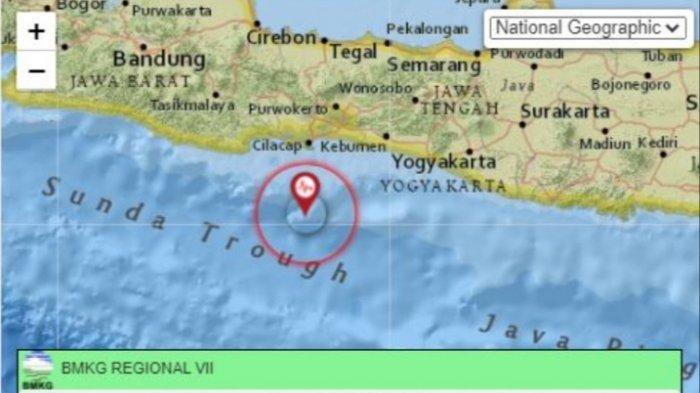 (65 km BaratDaya CILACAP-JATENG), Kedlmn:10 Km ::BMKG-PGR VII" demikian laporan BMKG Regional Yogyakarta dalam unggahan akun Twitter @bmkgjogja Stageof Sleman