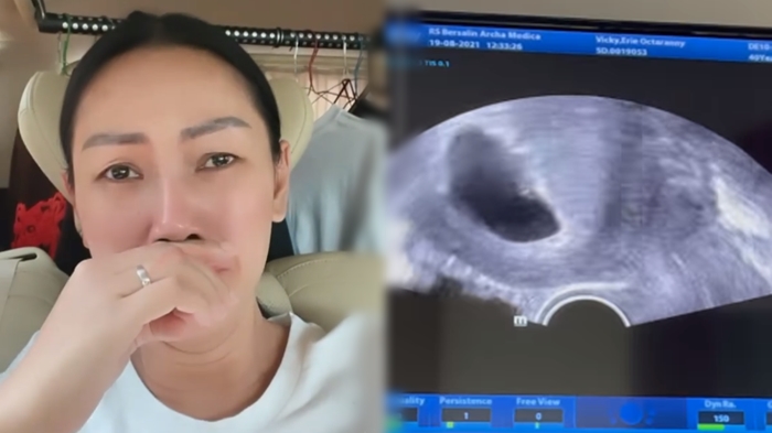 Istri Vicky Prasetyo tak kuasa menahan tangis saat menjelaskan jika janin yang ada dalam kandungan nya melemah.