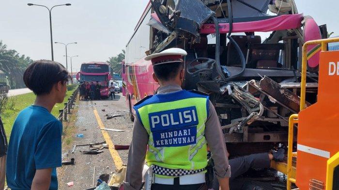 Kepala Induk PJR Serang Korlantas Polri Tol Tangerang-Merak, AKP Wiratno mengatakan kecelakaan melibatkan empat bus pariwisata.