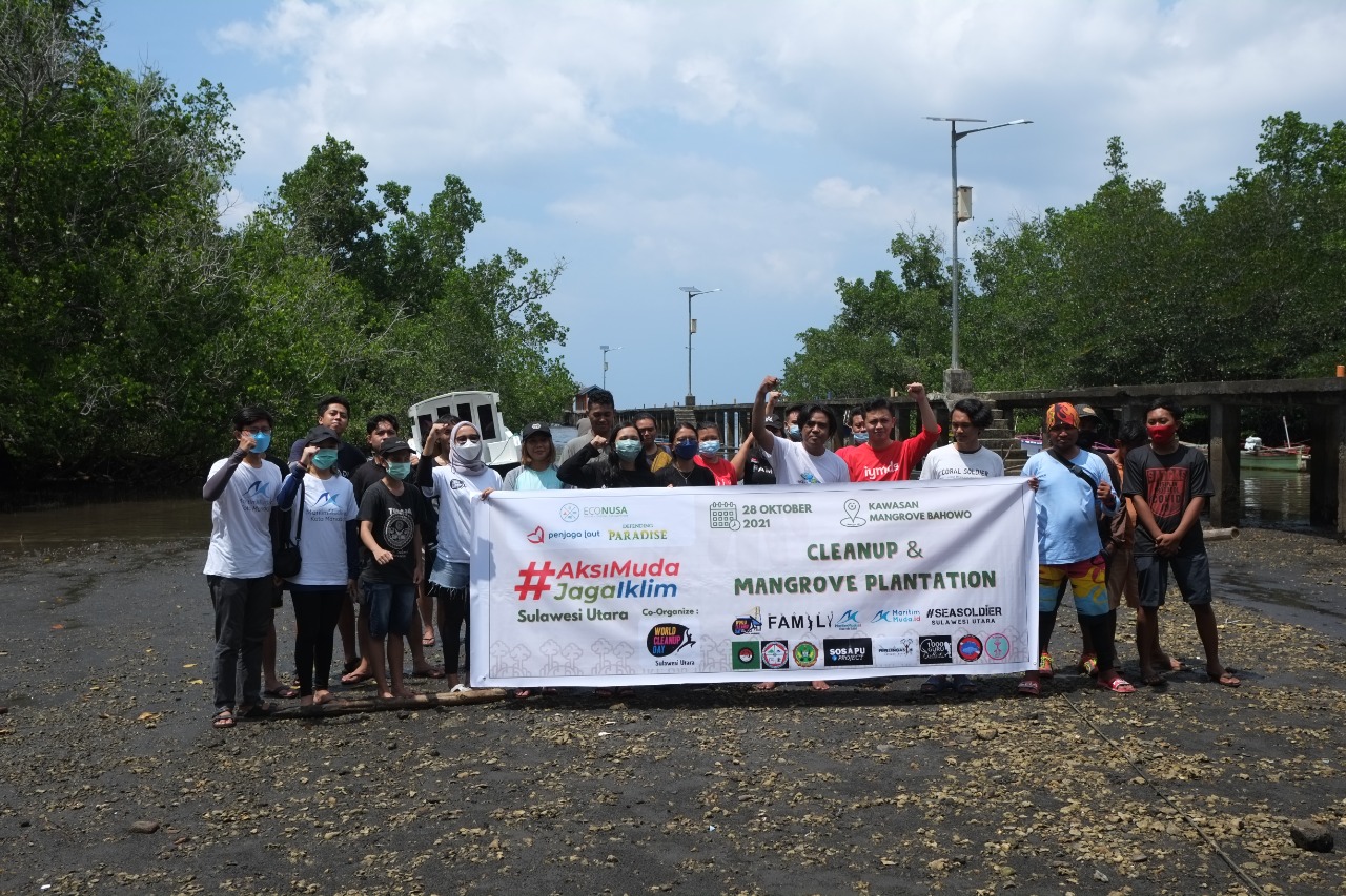 Ada sekitar sepuluh komunitas yang terlibat dalam aksi lingkungan di objek wisata yang hutan manggrove yang berada di area pesisir pantai Desa Bahowo, Kecamatan Bunaken, Kota Manado, Provinsi Sulawesi Utara.