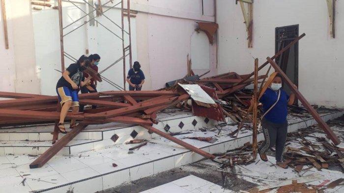 Hari Orang Muda Sedunia di Keuskupan Manado, OMK Paroki Ursula Watutumou Bersihkan Puing Gereja