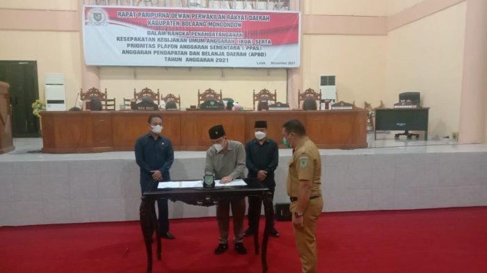 TRIBUNMANADO.CO.ID, Manado - Dewan Perwakilan Rakyat Daerah (DPRD) Kabupaten Bolaang Mongondow (Bolmong) menggelar rapat paripurna penandatanganan kesepakatan kebijakan Umum Anggaran (KUA) dan Prioritas Plafon Anggaran Sementara (PPAS) APBD Tahun 2022.