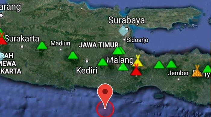 Guncangan berpusat di laut, 112 km dari daerah Kencong-Jatim, Indonesia. Kedalaman gempa 63 km.