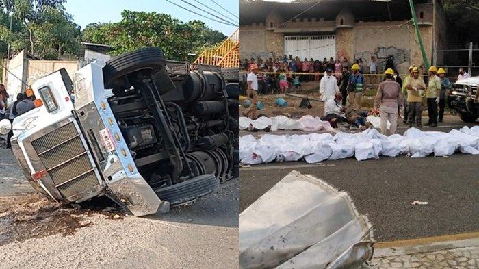 Truk kargo yang membawa migran dari Amerika Tengah terguling dan menabrak jembatan penyeberangan hingga mengakibatkan 53 orang tewas.